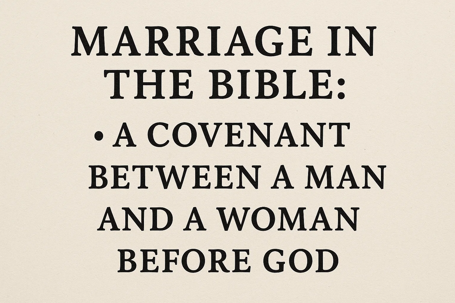 The Bible understands marriage as a sacred covenant, not just a contract, involving a lifelong promise of faithfulness between one man and one woman, rooted in the Genesis blueprint of leaving, cleaving, and becoming one flesh, recognized publicly and sanctioned by God.